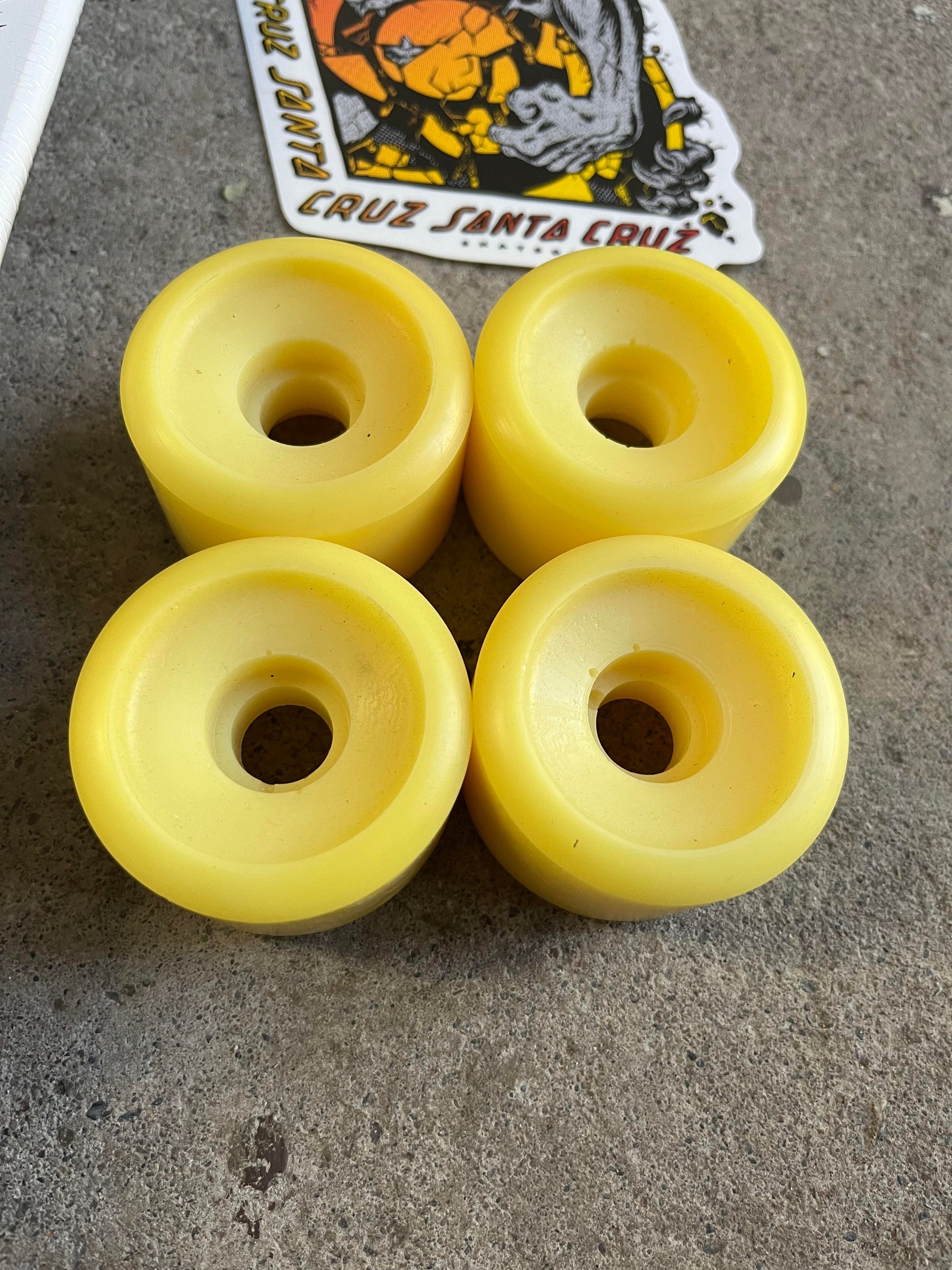 Gift Pack includes FREE NOS Schmitt Stix Blank Wheels (Faded) 2 Santa Cruz stickers and a pair of Old Skull Sunglasses!!! Santa Cruz Skateboards Meek OG Slasher Reissue deck featuring spot gloss graphic print on 7 ply North American Maple pressed individually using epoxy making a strong, responsive deck with long lasting pop and consistent concave and kick. Artwork by Jim Phillips, originally released in 1986. Length: 31.3 in xWidth: 10.1 in - Wheelbase: 15.5" - Nose: 5.226 in - Tail: 6.30 in
